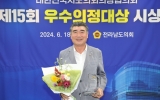 강진 온라인뉴스팀2024. 06.20[뉴스앤저널]전남도의회 예산결산특별위원회 최명수 위원장은 지난 18일 대한민국시도의회의장협의회 제15회 우수의정대상을 수상했다. ‘우수의정대상’은 대한민국시도의회의장협의회가 주관하여 전국 광역자치단체 의원을 대상으로 매년 지방의회 발전과 지역주민의 복리증진 및 삶의 질 향상에 기여한 의원을 선정해 수여하는 상으로 올해로 15회째를 맞고 있다. 최명수 위원장은 제12대 의회에 '전라남도 어린이놀이시설 안전관리 조례안', '전라남도 화재피해주민 지원 조례 일부개정조례안' 등 조례안 7건과, '고령자 금융피해 방지법 제정 촉구 건의...