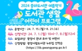 광양 온라인뉴스팀2024. 06.14[뉴스앤저널]중마도서관에서는 오는 7월 15일부터 8월 21일까지 6주 동안 어린이(유아 5~7세)와 초등학생(1~2학년)을 대상으로 ‘2024 중마도서관 여름학기 도서관 생활 어린이 프로그램’에 참여할 수강생을 선착순 모집한다고 밝혔다. 프로그램 내용은 ▲유아 5~6세는 ‘파란 상상 책 놀이 여름 속으로’ ▲유아 6~7세는 ‘말랑말랑 그림책 클레이’ ▲초등학생 1~2학년은 ‘여름아, 읽자! (세계 문화여행)’ 등 총 3개의 프로그램으로 구성됐다. 수강 신청은 7월 1일 오전 10시부터 7월 8일 12시까지 광양시립도서관 누리집...