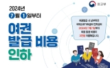 순천 온라인뉴스팀2024. 06.13[뉴스앤저널]순천시는 외교부의 '한국국제교류재단법' 시행령 개정으로 오는 7월 1일부터 여권 발급 수수료가 인하된다고 밝혔다. 이번 여권 발급 비용 인하는 정부의 ‘부담금 정비 및 관리체계 강화방안’의 후속 조치로 국민들의 실생활과 밀접한 부담금 감면으로 국민의 경제적 부담을 완화하기 위해 시행된다. 수수료에 포함된 국제교류기여금이 3천원 인하됨에 따라 10년 복수여권은 ▲58면 기준 5만원 ▲26면 기준 4만 7000원으로 변경된다. 5년 복수여권은 ▲58면 기준 4만 2000원 ▲26면 기준 3만 9000원으로 인하되며, ...