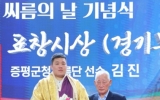 광주광역시 온라인뉴스팀2024. 06.10[뉴스앤저널]증평군청 인삼씨름단 소속 김 진(35) 선수가 문화체육관광부 장관 표창을 수상했다. 군에 따르면, 10일 강원도 강릉 단오제 행사장에서 열린 씨름의 날 기념식에서 김 진 선수가 대한민국 민속씨름 진흥에 이바지한 공을 인정받아 문체부장관 표창을 받았다고 밝혔다. 김 선수는 통산 2번의 천하장사와 9번의 백두장사 타이틀을 따내며 증평군을 전국 최고의 씨름 도시로 견인하는데 앞장선 선수다. 올해 직전 대회인 유성온천장사 씨름대회에서도 3위를 하는 등 좋은 성적을 거두고 있다. 김 진 선수는 “수상하게 되어 매우 영광스...