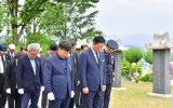 장성 온라인뉴스팀2024. 06.06[뉴스앤저널]김이강 서구청장은 6일 오전 광주공원 현충탑 앞에서 거행된 제69회 현충일 추념식에 참석해 순국선열과 호국영령의 숭고한 희생정신을 기렸다.