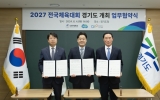 해남 온라인뉴스팀2024. 06.04[뉴스앤저널]경기도와 경기도체육회·대한체육회는 오병권 경기도 행정1부지사, 이원성 경기도체육회장, 윤성욱 대한체육회 사무총장 등 관계자들이 참석한 가운데 4일 업무협약을 체결하고 2027년 제108회 전국체육대회의 성공적인 개최를 위해 노력하기로 합의했다. 협약에 따라 세 기관은 ▲2027년 전국체육대회, 2028년 전국소년체육대회 및 2029년 전국생활체육대축전 개최 ▲경기장 시설 개․보수 등 대회 준비 ▲대회 조직위원회 구성 등을 위해 협력할 방침이다. 경기도는 지난해 11월 전국체육대회 유치 신청서를 경기도체육회를 통해 대...