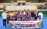 무안 온라인뉴스팀2024. 05.28[뉴스앤저널]김산 무안군수는 28일 스포츠파크 실내체육관에서 열린 2024년 제53회 전국소년체전 핸드볼 여자 12세 이하부 결승 경기에서 전북 대표로 나선 정읍서초등학교에 아쉽게 패해 준우승을 차지한 무안초 여자핸드볼부 선수와 지도자들을 격려했다. 지난해 소년체전 8강에서 아쉽게 탈락했던 무안초 여자핸드볼부 선수단은 올해 홈에서 열린 대회에서 경기 의정부 가능초와 대구사수초를 8강과 준결승에서 연파하고 창단 이래 처음으로 결승에 진출하였으나 아쉽게 우승의 벽을 넘지 못했다. 무안초 여자핸드볼부는 2018년 4월 열린 제73회 ...