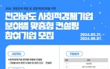 광산구 온라인뉴스팀2024. 05.21[뉴스앤저널]전남사회적경제통합지원센터는 사회적경제기업의 경쟁력 제고를 위해 ‘2024년 전라남도 사회적경제기업 분야별 맞춤형 컨설팅’참여 기업을 모집한다고 밝혔다. 컨설팅 분야는 경영·법률·기술·세무·노무·회계·마케팅 등으로 기업 운영에 필요한 전문적인 자문과 정보를 기업별로 맞춤 제공할 예정이다. 분야별 전문가와 기업의 1대1 매칭을 통해 추진되는 이번 컨설팅은 경영, 법률, 세무, 노무, 회계 등 애로사항 해소를 위한 전문 상담을 기업당 2회 실시한다. 컨설팅 지원 규모는 약 10개 기업으로 신청기업을 대상으로 적합성, 필...
