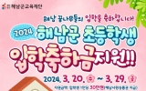 광양 최준규 기자2024. 03.06[뉴스킹]해남군이 초등학교 입학생들을 위한 입학 축하금을 지원한다. 대상은 올해 초등학교를 입학한 신입생으로 각 30만원을 해남사랑상품권으로 지급한다. 집중 신청기간은 3월 20일부터 29일까지 주소지 읍면사무소에서 방문 신청하며, 신청기간을 놓친 경우 해남군 교육재단으로 직접 방문 신청하면 된다. 입학일 기준 해남군에 주소를 두고 초등학교에 최초 입학한 학생으로, 입학생의 친권자 또는 사실상 양육하고 있는 보호자가 신청할 수 있다. 해남군 이외 지역에서 입학한 후 관내 초등학교로 전학 온 경우는 지원 대상에서 제외된다...