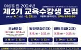 의회 최준규 기자2024. 03.06[뉴스킹]부산시 여성회관은 시민들의 취업, 창업 등 경제활동 참여와 직장인 등의 능력개발을 위해 '2024년 제2기 교육과정' 수강생을 오는 3월 11일부터 모집한다고 밝혔다. 이번 교육은 4월 1일부터 6월 29일까지 3개월간 진행된다. 여성회관은 공예, 미용, 요리, 커피, 제과제빵, 봉제, 외국어, 컴퓨터, 노인교구 등 9개 분야 88개 과목에서 1,772명의 수강생을 모집한다. 이번 교육과정에서는 취·창업 등에 도움이 되는 자격증 강좌, 기능생활교양 강좌와 함께 직장인 및 가족을 위한 야간강좌 및 주말강좌가 운...