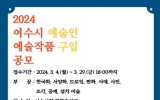 여수 최준규 기자2024. 02.29[뉴스킹]여수시가 여수시 지역작가들의 창작활동을 지원하기 위해 내달 3월 29일까지 ‘지역예술인 작품구입 공모’를 진행한다. 공모분야는 한국화, 서양화, 판화, 서예, 사진, 조각, 공예 등 9개 부문이다. 응모 자격은 공고일 26일 기준 여수시에 주소를 두고 지역에서 활동하고 있는 예술인으로 개인전 2회 이상의 개최 실적, 기획전 또는 그룹전 3회 이상 출품 경력, 최근 3년 이내 전국 규모 미술 공모전에서 3회 이상 입상 등 하나 이상의 경력이 있어야 한다. 응모 희망자는 내달 3월 4일부터 29일까지 시 문화유산과로...
