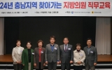 종합 최준규 기자2024. 02.27[뉴스킹]홍성군의회의 군의원과 의회사무국 직원 총 14명이 지방자치인재개발원 지방의정연수센터에서 주최·주관하는 ‘찾아가는 지방의원 직무교육’에 27일부터 28일까지 1박 2일의 일정으로 참석하여 의정활동 역량 강화를 위한 의지를 밝혔다. ‘찾아가는 지방의원 직무교육’은 지방의정연수센터(전북특별자치도 완주군 소재)와 지리적 접근성이 떨어져 교육 참여가 어려운 지방의회를 대상으로 교육기회 제공을 위함이 추진배경이며, 상반기 첫 번째 일정으로 충청남도 시군의회를 대상으로 충남 태안군 소재의 아일랜드 리솜 리조트에서 교육이 시행됐다. ...