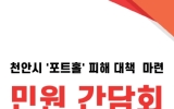 [뉴스킹] 천안시의회 장혁 의원(불당1·2동, 국민의힘)은 29일 천안시의회 2층 행정안전위원회 회의실에서‘천안시 포트홀 피해 대책 마련 간담회’를 개최한다. 이번 간담회는 최근 궂은 날씨가 계속됨에 따라 천안시 곳곳에 발생한‘포트홀’이 천안시민들의 안전을 위협하고 있어 관계부서와 대책마련을 논의하고자 마련됐다. 이번 간담회를 주최한 장혁의원은 천안시 회계과, 건설도로과, 양 구청 건설과, 법률자문관 등의 전문적인 견해를 제시하고 시민들의 다양한 의견도 수렴할 예정이다. 특히 장혁의원은 ▲포트홀 피해에 대한 시민들의 영조물 배...