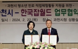정치일반 최준규 기자2024. 02.22[뉴스킹]과천시는 22일 시청 상황실에서 한국잡월드와 지역 청소년의 진로·직업체험 활동 지원을 위한 협약을 체결했다. 업무협약식에는 신계용 과천시장과 이병균 한국잡월드 이사장 등 두 기관 관계자가 참석했다. 두 기관은 협약에 따라, △자유학기제 등 진로‧직업 체험활동 및 교육 지원 △과천시 관내 학교의 한국잡월드 이용 협조 △취약계층 청소년에 대한 진로‧직업 체험교육 지원 △진로교육 공동사업에 관한 교육지원청 등 과천시 유관기관에 대한 홍보 협력을 추진한다. 과천시는 국내 최대 규모의 종합직업진로체험관인 한국잡월드와의 이번...