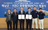 최준규 기자2024. 02.22[뉴스킹]KBO 허구연 총재와 명현관 해남군수는 21일(수) 국내 프로, 아마추어 야구팀들의 동계전지훈련 및 대회, 야구관련 행사 등 야구 발전과 지역경제활성화를 위한 ‘남해안벨트 MOU’를 체결했다. 해남군은 삼산면 평활리에 87,767㎡(약 26,549평) 규모의 부지를 마련하고 정식 규격 야구장 1면과 야구, 축구 등 복합종목경기장 1면이 포함된 ‘해남스포츠파크’를 141억원의 예산으로 연말까지 준공한다. 해남군은 이로써 현재 군 내에 위치한 해남야구장을 포함해 총 3면의 야구장을 갖추게 됐다. 또한 날씨와 관계없이 사계...