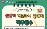 최준규 기자2024. 02.21[뉴스킹]경기도고양교육지원청은 2월 22일 관내 공립유·초·중·고·특수·각종학교 186교(원) 영양교사·영앙사를 대상으로 원격 직무연수를 실시한다. 이번 연수는 ▲학교급식 식중독 발생 현장 대응 강화 방안 ▲GMO, 방사능 오염 식품 및 청렴 직무연수 등으로 진행한다. 특히, 2024학년도 신학기를 맞아 고양시청 역학조사관을 특별 강사로 초빙하여 식중독 발생 초기 현장 대응 방법 및 의심 환자 가검물 채취, 식중독 사고 사후 조치 등 학교급식 위생·안전 사고 예방을 위한 현장 맞춤형 교육을 중점적으로 실시할 계획이다. 이번...
