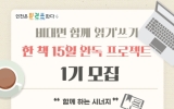 대통령실 최준규 기자2024. 02.21[뉴스킹]인천광역시교육청주안도서관은 청소년과 성인을 대상으로 읽걷쓰 시민문화 확산을 위해 비대면으로 운영하는 '한 책 15일 완독 프로젝트' 참여자를 21일부터 모집한다. '한 책 15일 완독 프로젝트'는 선정 도서 한 책을 15일간 SNS를 이용하여 독서전문지도자의 지도로 함께 읽고 감상을 나누는 활동으로 진행한다. 올해는 총 7권의 도서를 선정해 3월부터 7기 과정으로 운영하며, 완독 후 서평 쓰기를 통해 독서의 감상을 깊이 있게 나눌 예정이며 이를 위해 참여자 우선으로 7월에 ‘서평 잘 쓰는 법’ 강좌를 개설해 운영할 계획...