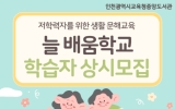 대통령실 최준규 기자2024. 02.21[뉴스킹]인천광역시교육청중앙도서관은 학습에 대한 열정이 있는 저학력 성인들의 배움을 위한 생활 밀착형 문해교육 ‘늘 배움학교’ 프로그램을 3월부터 12월까지 매주 금요일 중앙도서관 배움 1실에서 운영한다. ‘늘 배움학교’는 건강한 식생활, 교통수단, 키오스크 사용법 등 일상생활 관련 생활 문해교육을 진행하며 특히, 올해는 자서전 쓰기, 편지쓰기 등 다양한 글쓰기 활동을 진행 후 글감을 활용해 자전적 문집을 발간할 예정이다. 이밖에 ▶앱을 활용해 급변하는 디지털 시대에 적응하는 능력을 키우는 ‘스마트한 디지털 생활’ ▶매듭 공예,...