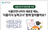 농·수·축협·산림조합 최준규 기자2024. 02.19[뉴스킹]식품안전나라의 새로운 메뉴, ‘식품지식 능력고사’ 함께 알아볼까요? ◆ 식품지식 능력고사란? 소비자가 식품 안전에 대한 정보를 이해하고 실생활에서 활용하는데 도움을 주기 위해 개발된 퀴즈 서비스로 연령별 맞춤형 식품안전 퀴즈를 제공하는 메뉴입니다. *경로 : 식품안전나라 '식품·안전 ' 식품안전 '식품지식 능력고사 더 많은 식품안전 콘텐츠를 ‘식품안전나라’에서 확인하세요!