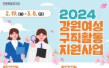 남구 최준규 기자2024. 02.19[뉴스킹]양양군이 구직의사가 있는 미취업 여성의 경제활동 참여를 활성화하기 위해 ‘2024년 여성구직활동 지원사업’의 신청자 16명(신규 10명, 재참여 6명)을 모집한다. 여성구직활동 지원사업은 미취업 여성에게 교육 및 면접활동 등에 사용할 수 있는 교육비, 교재구입비, 시험응시료, 교통비, 면접활동비, 소모성 사무용품 등의 구입을 위한 구직활동지원금(온라인 포인트)을 일정기간 지원하는 사업이다. 신규참여자는 월 50만원씩 6개월 간 최대 300만원까지 지원받을 수 있고, 재참여자는 월 50만원씩 3개월 간 최대 150만원까...