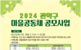 의회 최준규 기자2024. 02.18[뉴스킹]관악구는 오는 2월 23일까지 주민이 스스로 살기 좋은 마을을 조성할 수 있도록 '2024년 관악구 마을공동체 공모사업' 참여자를 모집한다. '2024년 관악구 마을공동체 공모사업'은 주민 스스로 지역문제 해결, 이웃 간 소통 활성화, 공동체 관계 회복을 통해 마을공동체를 활성화할 수 있도록 사업계획과 실행과정을 지원하는 사업이다. 주민이 스스로 필요한 지역문제를 발굴하고 해결하는 과정을 통해 자치역량을 강화하고 이웃 간 관계망을 확장하여 주민공동체를 회복한다는 점에서 의미가 있다. 공모 분야는 신규 공동체 대상으로...