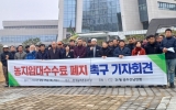 대통령실 최준규 기자2024. 02.16[뉴스킹]전남도의회 박형대 의원(진보당,장흥1)은 지난 2월 15일 한국농어촌공사 앞에서 전국농민회총연맹 광주전남연맹과 함께 농지임대수수료 폐지를 촉구하는 기자회견에 참석했다. 한국농어촌공사는 농지 소유자가 직접 농사를 짓기 어려울 경우 농지를 위탁받아 다른 농민에게 임대하는 농지임대 수탁사업을 운영하면서 임대료의 5%를 수수료로 받고 있다. 하지만 임대인들은 임대수수료 5%를 임차인에게 전가해 임차농민의 임대료 부담이 커지고 있는 실정이다. 박형대 의원은 “2023년의 경우 계약유지건이 216,006건, 수수료 수익은 78억...