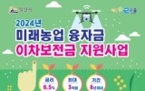 대통령실 최준규 기자2024. 02.16[뉴스킹] 익산시가 농업인 경영안정을 위해 올해 100억 원의 규모의 농·림·축산업 분야의 미래농업 융자금 이차보전금 지원에 나선다. 신청 접수는 상·하반기 연 2회 진행되며, 상반기 접수는 오는 19일부터 29일까지 농지소재지 읍·면·동 행정복지센터 또는 바이오농업과에 신청서류를 제출하면 된다. 미래농업 융자금 이차보전금 지원사업은 지역 농·축·원협에서 농가당 3억 원까지 대출 시 발생하는 6.5%의 대출이율에 대해 익산시가 4%를 지원하는 사업이다. 최대 8년까지 지원되고 청년농업인은 최대 10년까지 연장할 수 있다. ...