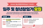 의회 최준규 기자2024. 02.16[뉴스킹]홍성군이 오는 2월 27일까지 홍성복합문화창업공간 잇슈창고에 입주할 청년 (예비)창업자 및 입주 기업을 모집한다고 밝혔다. 군에 따르면 금년도에는 청년 (예비)창업자 및 기업으로 로컬창업 5개팀을 발굴하여 잇슈창고 공유오피스 공간 제공 및 팀당 최대 5백만원의 시제품 제작을 위한 사업화 지원금을 제공한다. 또한 청년 (예비)창업자 및 입주기업을 대상으로 사업 고도화를 위한 창업 교육과 일대일 맞춤형 멘토링 프로그램 등을 지원하여 지역에 정착하면서 창업할 수 있는 여건을 만들어 나간다는 계획이다. 모집분야는 홍성군 농...
