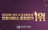 장성 최준규 기자2024. 02.15[뉴스킹]부산시교육청이 수요자 맞춤 민원 서비스를 제공하며 고충 민원 등을 처리에 힘쓴 공로를 인정받았다. 부산광역시교육청은 행정안전부와 국민권익위원회에서 공동 주관한 ‘2023년 민원 서비스 종합평가’에서 17개 시도교육청 가운데 1위를 차지하는 쾌거를 거뒀다고 15일 밝혔다. 이로써 부산교육청은 지난해 종합청렴도 평가, 시·도교육청 평가에 이어 교육행정 관련 평가 트리플 크라운을 달성했다. 행정안전부는 2022년 9월부터 2023년 8월까지 중앙행정기관, 전국 시·도교육청, 광역·기초지자체 등 306개 행정기관의 ...