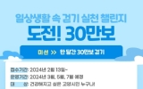 화순 최준규 기자2024. 02.14[뉴스킹]고양특례시 덕양구보건소 건강생활지원센터고양은 ‘도전! 30만보’걷기 챌린지 대상자를 모집한다고 14일 밝혔다. ‘도전! 30만보’ 걷기 챌린지는 일상생활 속 걷기를 통해 규칙적인 걷기 습관의 정착과 지역주민의 건강관리능력 향상을 위해 운영되는 걷기 프로그램이다. 1기의 신청기간은 2월 29일까지이며 사전 체성분 검사 및 건강상담을 위해 방문접수(경기도 고양시 덕양구 혜음로 19-11)로 신청을 받는다. 참여자는 신청 후 3월 한 달간 30만보를 걷고 핸드폰 건강어플로 걸음 수를 인증 하면 된다. 또한 전․후 체성분...