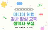 순천 최준규 기자2024. 02.08[뉴스킹]순천시영상미디어센터는 2024년도‘미디어 체험 강사 양성 교육’참여자를 오는 19일까지 모집한다. ‘미디어 체험 강사 양성 교육’은 미디어체험 프로그램 운영 활성화 및 지역 내 미디어 전문 인력 양성을 위한 교육이다. 모집 자격은 양성 교육 과정을 성실하게 참여하며, 수료 후 지속적으로 체험 강사 활동이 가능하다면 누구나 신청 가능하다. 교육은 3월 6일 수요일과 3월 7일 목요일 양일간 진행되며 ▲미디어 체험 교수법 습득 ▲미디어 체험 프로그램의 이해 ▲스튜디오 프로그램 장비 교육으로 구성되어 있다. 이후 자율...