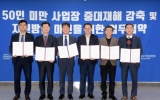광주광역시 최준규 기자2024. 02.07[뉴스킹]광주시가 ‘중대재해처벌법’이 50인 미만으로 전면 확대·시행됨에 따라 현장의 안전사고 예방 및 안전문화 정착을 위해 고용안전 관계기관들과 손을 맞잡았다. 광주광역시는 7일 오후 시청 중회의실에서 광주고용노동청, 광주전남지방중소벤처기업청, 안전보건공단 광주광역본부, 중소벤처기업진흥공단 광주지역본부, 중소기업중앙회 광주전남지역본부 등 6개기관과 ‘50인 미만 사업장 중대재해 감축 및 지원방안 마련을 위한 업무협약’을 체결했다. 이번 협약은 지난달 27일 ‘중대재해처벌법’이 50인 미만으로 전면 확대·시행됨에 따라 기관 간 ...
