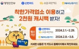 여수 최준규 기자2024. 02.06[뉴스킹]여수시는 설 명절을 맞아 지역 내 착한가격업소에서 신한·KB국민·NH농협카드로 1만 원 이상 결제 시 2,000원 캐시백을 받을 수 있다고 6일 밝혔다. 물가안정과 착한가격업소 활성화를 위해 추진되는 이번 행사는 ▲신한·KB국민카드는 2월 1일부터 29일까지 ▲NH농협카드는 2월 8일부터 3월 8일까지 진행된다. 이용방법은 카드사 홈페이지 또는 어플 이벤트 페이지 응모 후 결제, KB Pay 결제로 1만 원 이상 결제 시 2천 원의 캐시백 혜택이 최대 5회, 만원까지 제공된다. 시 관계자는 “지속적인 물가상승으로 경...