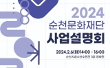 순천 최준규 기자2024. 02.05[뉴스킹](재)순천문화재단은 오는 6일 오후 2시부터 4시까지 순천시 청소년수련관 3층 영화관에서 순천시 문화예술인과 시민을 대상으로“2024 순천문화재단 사업설명회”를 개최한다고 밝혔다. 이번 사업설명회는 2023년 순천문화재단 20개 사업에 대한 성과를 공유하고, 2024년 순천문화재단에서 진행 예정인 ▲ 문화정책팀 7개 사업 ▲ 예술진흥팀 8개 사업 ▲ 자원운영팀 4개 사업 ▲ 경영지원팀 2개 사업 등 총 21개 세부사업을 소개한다. 사업 설명회 후에는 청소년 수련관 3층 로비에서 별도의 사업별 심층 질의응답을 통해 세...