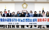 대통령실 최준규 기자2024. 02.05[뉴스킹]인천시 부평구의회는 2월 2일 부평구의회 제260회 정례회 제2차 본회의에서 허정미 의원이 대표발의하고 윤구영 의원, 황미라 의원이 공동발의한 '상동호수공원 GTX-B 노선 변전소 설치 철회 촉구 결의안'을 의결하여 채택했다. 현재 국토교통부에서 추진하고 있는 GTX-B 노선은 인천 송도역에서 경기 남양주 마석역을 잇는 노선이며, 변전소는 2개소가 예정되어 있다. 한 곳은 현재 경춘선 변전소로 운영 중인 마석역의 변전소를 개량하여 사용하고 다른 한 곳은 부천 상동호수공원에 신설 예정이다. 이 중 부천 상동호수공원에 설...
