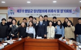 전라남도 최준규 기자2024. 02.04[뉴스킹]영암군이 1일 지속가능한 청년 체감형 정책 발굴을 위해 ‘제3기 청년협의체 위촉식 및 2024년 제1회 정기회의’를 열었다. 이날 위촉식에서는 지난해 9월 참여한 14명 위원과 최근 추가 모집된 10명 위원에게 위촉장을 수여했다. 이들은 19~49세 청년들로 공개모집을 거쳐 선발됐고, 창업·일자리, 복지·문화, 소통·참여, 농업, 총 4개 분과에서 활동한다. 이어진 정기회의에서 청년들은 애로사항을 이야기했다. 특히, 청년문화거리 조성과 올해 개관 예정인 청년종합소통센터 명칭 등 다양한 주제를 놓고 의견을 나눴다...