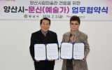 종합 최준규 기자2024. 02.02[뉴스킹]양산시는 2일 양산시립미술관 건립 추진을 위해 양산시-문신(예술가)간 업무협약을 체결했다고 밝혔다. 이날 협약식에서 나동연 시장은 문신의 배우자로 문신 사후 작품을 관리하며 창원시립마산문신미술관 명예관장, 숙명여대 문신미술관 관장으로도 재직 중인 최성숙 동양화가와 함께 시립미술관 건립 추진을 위한 상호 협력, 미술작품 기증 및 대여 등 소장품 확보 지원, 소장품 전시 및 상호 교류 등의 내용을 담은 협약서에 서명했다. 지난 1995년 타계한 예술가 문신은 한국을 대표하는 세계적인 조각가로, 지난 1992년 프랑스 파리시...