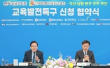 장흥 최준규 기자2024. 02.01[뉴스킹]전북특별자치도와 전북특별자치도교육청, 익산시, 남원시, 완주군, 무주군, 부안군과 도내 대학·기업이 1일 도교육청 대강당에서 교육발전특구 시범사업 지정을 위한 업무협약을 체결했다. 이날 협약식에는 김관영 전북특별자치도지사와 서거석 전북특별자치도 교육감, 5개 시․군 지자체장, 군산대학교, 우석대학교, 원광대학교, 원광보건대학교, 전북대학교, 전주대학교, 전주비전대학교 도내 대학과 함께, 한국식품클러스터진흥원, 캠틱, 완주산단진흥회, 현대자동차, 태권도진흥재단, 한풍제약, 대두식품 도내 기업도 함께 참석해 지방교육을 통...
