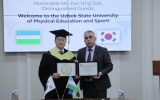 함평 전대상 기자2026. 04.14[뉴스앤저널]윤웅석 국기원장이 우즈베키스탄 국립체육대학교 명예박사 학위를 받았다. 지난 4월 13일 오전 11시(현지시간) 우즈베키스탄 국립체육대학교에서 라시드 마트카리모프(Matkarimov Rashid) 총장이 윤웅석 원장에게 명예박사 학위를 수여했다. 이번 명예박사 학위 수여는 윤웅석 원장이 태권도 발전을 위해 쏟은 지속적인 헌신과 더불어, 국기원과 우즈베키스탄 국립체육대학교 간의 긴밀한 협력 및 지원에 대한 감사의 의미로 마련됐다. 또한, 국기원은 2014년부터 백문종 해외 파견사범을 우즈베키스탄에 파견해 국립체육대학교...