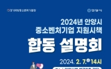 [뉴스킹]안양시는 관내 중소기업 및 벤처기업 임직원을 대상으로 ‘2024년 중소・벤처기업 지원시책 합동설명회’를 오는 7일 오후 2시 안양시청 강당에서 개최한다고 1일 밝혔다. 시는 기업에 도움이 되는 정부・유관기관의 각종 정보를 체계적으로 전달하기 위해 매년 합동설명회를 열고 있다. 경기지방중소벤처기업청 주최, 안양시 주관으로 열리는 이번 설명회에는 경기지방중소벤처기업청·중소벤처기업진흥공단·대한무역투자진흥공사(KOTRA) 경기지원단·기술보증기금·경기신용보증재단·신용보증기금 등 13개 기관이 참여할 예정이다. 이들 기관은 ▲자...