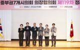 전라남도 최준규 기자2024. 02.01[뉴스킹]경기도 중부권 의장협의회 정례회의가 1월 31일 군포시의회 주관으로 군포문화예술회관 국제회의장에서 개최됐다. 제119차 정례회의를 진행한 의장협의회는 이날 회장인 광명시의회 안성환 의장을 비롯해 이길호 군포시의회 의장 등 경기 중부권 시의회 의장들이 지역 협력 도모를 위한 의지를 모았다. 이와 관련 의장협의회는 회의 중 각 의회 의정활동 현황 및 성과를 공유하며, 전반기 활동 종료를 앞두고 유종의 미를 거둘 방안도 논의했다. 이 자리에서 이길호 군포시의회 의장은 “지방의회와 지방정부가 서로 존중하고 협력해야 도시 발전...