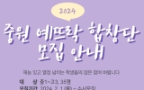 대통령실 최준규 기자2024. 01.31[뉴스킹]충청북도교육청 직속기관 중원교육문화원이 2월 1일부터 3월 15일까지 '중원예(藝)뜨락합창단 3기' 단원을 모집한다. 2022년에 창단한 중원예(藝)뜨락합창단은 현재 31명의 단원들이 활동하고 있으며, 추가로 열정이 넘치고 합창 활동에 관심 있는 도내 중학생 1학년부터 고등학생 3학년을 대상으로 10명 내외 인원을 선발한다. 오디션은 2월 17일 , 3월 16일 10시 30분에 2회로 나누어 충주에 있는 중원교육문화원 예술마당에서 실시할 예정이며, 접수된 순서에 따라 개별적으로 안내할 예정이다. 올해에는 새롭게 선발된...