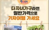 광주메인 최준규 기자2024. 01.30[뉴스킹]다자녀 가구라면 절반가격으로 기차여행 가세요! ∨ 다자녀가구 철도 이용 기준 3명 → 2명 ∨ 3자녀 이상 가구 운임할인 50%로 확대 ◆ 다자녀가구 철도 이용인원 제한 완화 ’24년 하반기부터 다자녀가구 철도 이용인원 제한을 3명에서 2명으로 완화하여 혜택을 넓힙니다. (다자녀가구 2명 : 부모 1명, 6세 미만 유아 1명) ◆ 3월부터 다자녀 혜택 50%! 기존의 다자녀가구(2명 이상)에 대해 3명 이상 철도 이용 시 30% 운임할인에서 변경 결과 다자녀가구 중 3자녀 이상 가구에 대해 운임할인을 50%로 확대...