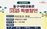 건설·부동산 최준규 기자2024. 01.30[뉴스킹]인천 동구는 민족 대명절 설을 맞이하여 동구사랑상품권을 10% 특별 할인 판매한다고 밝혔다. 동구사랑상품권은 관내 전통시장과 골목상권 내 소비를 유도해 지역 경제 활성화에 기여하고 있다. 구는 오는 2월 1~8일까지 10억원 상당의 상품권을 10% 특별 할인 판매하며, 소진 시 조기 종료된다. 상품권은 1인당 50만원 이내 구입 가능하다. 상품권 구매자는 관내 새마을금고 5곳(화도진, 송림, 송화, 평화, 희망), 신협 7곳(대성, 송림, 송림중앙, 인천중부, 솔빛, 동인천, 현대제철), 농협 4곳(인천원예, 인천옹진...