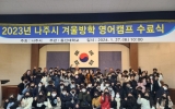 나주 최준규 기자2024. 01.29[뉴스킹]전라남도 나주시는 지난 15일부터 2주간 동신대 국제교육원에서 관내 초등학교 5~6학년 학생들을 대상으로 실시한 겨울방학 영어캠프가 성황리에 마무리됐다고 30일 밝혔다. ‘NAJU, Heart of world’를 주제로 열린 캠프는 나주의 역사와 명소 등을 영어로 배우고 탐구하는 과정이 주를 이뤘으며, 체육, 미술 등 예체능을 영어와 접목해 신나고 즐겁게 영어를 익힐 수 있는 계기가 됐다는 평이다. 특히 영어 학습 성과를 높이기 위해 시험 및 면접에 따라 수준별 4개반으로 편성했으며, 모든 수업을 원어민 교사들과 영...