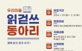 대통령실 최준규 기자2024. 01.29[뉴스킹]인천광역시교육청부평도서관은 마을교육 협력사업 '우리마을 읽걷쓰 동아리'를 29일부터 2월 13일까지 모집한다. 사업은 인천시교육청의 역점사업인 읽걷쓰 캠페인의 일환으로, 자생적인 읽걷쓰 동아리를 발굴하고 지속적인 활동을 지원한다. 작은도서관, 지역아동센터 등 마을 교육기관에서 자체적으로 조직한 읽걷쓰 동아리 중 최소 회원 10인 이상, 월 2회 이상 정기 모임이 가능한 동아리를 대상으로 독서 및 글쓰기 전문가와 책 출간까지 지원하며, 참여를 희망하는 기관은 신청기간 내에 부평도서관 독서문화과로 신청하면 된다. 부평도...