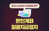 정치메인 최준규 기자2024. 01.29[뉴스킹]보이스피싱이 의심된다면, ‘본인계좌 일괄지급정지’ 서비스를 활용하세요! 나날이 교묘해지는 보이스피싱 수법에 선제 대응하기 위한 ‘본인계좌 일괄지급정지’서비스가 출시 1년을 맞이했습니다. 본인계좌 일괄지급정지 서비스 보이스피싱 의심 시 본인 명의로 개설된 모든 계좌를 일괄 또는 선택하여 지급정지 - 2023년 490,000건 이용 - 오프라인으로 확대된 하반기 월평균 이용건수 상반기 대비 15배 상승 △ 정지신청 : 고객 본인 모든 계좌 조회 및 일괄지급정지 · 이용대상 : 만 19세 이상 내국인 (미성년자, 외국인...