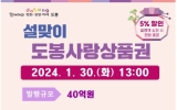의회 최준규 기자2024. 01.29[뉴스킹]도봉구가 설 명절을 앞두고 지역상권 활성화를 위해 오는 1월 30일 오후 1시부터 ‘도봉사랑상품권’을 40억 원 규모로 발행한다. 이번에 발행되는 도봉사랑상품권은 1만 원 단위의 모바일 상품권으로 1인 기준 구매한도는 월 50만 원이다. 보유한도는 150만 원까지며, 유효기간은 구매일로부터 5년이다. 구매와 결제는 ▲서울Pay+ ▲신한쏠페이 ▲티머니페이 ▲머니트리 ▲신한쏠뱅크의 5가지 앱에서 가능하며, 액면가보다 5% 할인된 금액으로 구매할 수 있다. 상품권 구매 후 기간에 관계없이 전액 구매취소도 가능하며, 구매금액...