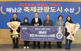 [뉴스킹]해남군이 지난 24일 2024 K-브랜드 어워즈 축제관광도시 분야를 수상했다. K-브랜드 어워즈는 기획재정부·행정안전부·문화체육관광부 등 8개 기관이 후원하는 시상식으로 창의적이고 선진적인 브랜드 경연을 통해 산업 경쟁력을 제고하고 국가 경제 발전에 기여한 우수 콘텐츠 및 브랜드를 선정했다. 해남군은 사계절 축제 완성을 바탕으로 체류형 로컬관광 등 다양한 분야에서 괄목할 만한 성과를 이뤄내면서 축제관광도시 분야에서 수상의 영예를 안았다. 해남군은 사계절 축제로 봄에는 달마고도 힐링 축제, 어린이 공룡 대축제를 개최했으...