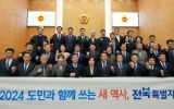 정치일반 최준규 기자2024. 01.24[뉴스킹]전북특별자치도의회가 24일 올해 첫 임시회에서 새로운 희망의 역사를 써나갈 전북특별자치도의회 출범을 알리는 퍼포먼스를 진행했다. 도의회는 이날 본회의장에서 전체 의원이 참석한 가운데 ‘2024 도민과 함께 쓰는 새 역사, 전북특별자치도의회’라는 문구가 적힌 현수막을 들고, 지역 발전과 도민 행복을 위한 다짐의 구호를 외쳤다. 국주영은 의장은 “이제부터가 시작”이라며 “특별자치도라는 이름에 담긴 수많은 기대와 염원을 실현해야 한다”고 결연한 의지를 내비쳤다. 특히 “도의회는 고도의 자치권이 원활하게 작동되도록 전북...