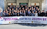 [뉴스킹]대구광역시의회와 광주광역시의회는 1월 24일 대구시의회 1층 로비에서 양 도시 시의회 의원의 이름으로 '달빛철도특별법'의 조속한 국회 통과를 촉구하는 공동성명서를 발표했다. 성명서 발표에 모인 대구·광주광역시의회 의원들은 '달빛철도특별법'에 대한 국회의 즉각적인 제정을 촉구하고, 달빛철도의 성공적인 건설을 위해 양 도시 시의회가 화합하고 협력할 것을 다짐했다. 이날 공동성명서 발표는 전경원 대구시의회 운영위원장의 사회로 이만규 의장과 정무창 의장의 인사말씀, 양 도시 의원들의 공동성명서 발표 및 기념촬영 순으로 진행됐...