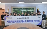 정치일반 최준규 기자2024. 01.23[뉴스킹] 서울특별시의회 김현기 의장은 22일 의회 본관 의장접견실에서 서울시의회 제4기 대학생 인턴 15명과 간담회를 갖고, 청년들의 목소리를 청취했다. 이날 간담회는 김현기 의장의 격려사와 질의응답, 기념촬영 순으로 진행됐다. 김 의장은 인턴 15명과 일일이 악수 후 격려사를 통해 “서울시의회 대학생 인턴십을 통해 청년들의 지방의회와 지방자치에 대한 이해의 폭이 넓어지길 기대한다”라며, “지방자치는 시민들의 적극적인 참여를 토대로 발전하는 만큼 많은 관심과 참여를 바란다”라고 당부했다. 특히 이날 지방의회의 발전 방...