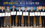 대통령실 최준규 기자2024. 01.23[뉴스킹]전북특별자치도가 특별자치도 출범 이후 첫 투자 및 업무협약을 전략산업분야인 바이오기업들과 맺었다. 도에 따르면 23일 도청 회의실에서 김관영 전북특별자치도지사와 우범기 전주시장, 이학수 정읍시장, 유희철 전북대병원장, 정병엽 첨단방사선연구소장, 양지훈 넥스트앤바이오 대표, 최석규 바이오메이신 대표, 박재형 에이치엘비제약 대표 등이 참석한 가운데 국내 대표 바이오 기업인 넥스트앤바이오, 도 소재 바이오기업인 바이오메이신과 투자 및 업무협약을 각각 체결했다. 전북자치도는 올해 바이오특화단지, 기회발전특구 등 바이오를 기반...