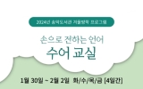 대통령실 최준규 기자2024. 01.23[뉴스킹]제주도교육청 송악도서관은 겨울방학을 맞아 어린이들이 도서관에서 수어를 배우고 장애인에 대한 인식을 개선할 수 있도록‘손으로 전하는 언어, 수어 교실’을 운영한다. 1월 30일부터 2월 2일까지 총 4일에 걸쳐 농아인협회 서귀포지회 소속 문미진 사무국장을 강사로 모시고 기본 지문자를 배우고, 수어로 다양하게 표현하는 법을 배워볼 예정이다. 오는 1월 24일부터 제주도교육청 공공도서관 홈페이지에서 사전 신청을 받을 예정이다. 도서관 관계자는“이번 프로그램을 통해 어린이들이 또 하나의 언어인 수어를 배우고, 소통하는 ...